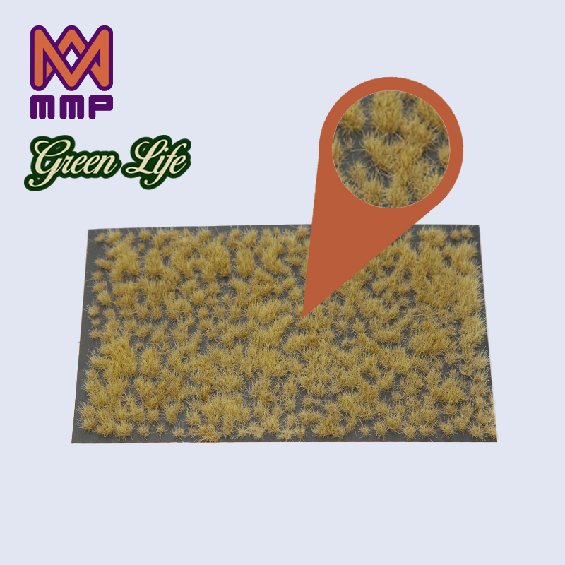 | Se comienza con hierba color marron quemado oscuro de 2 mm, luego se agregan mechones de color beige que representan el pasto seco estacional colocados al azar. | ||||||